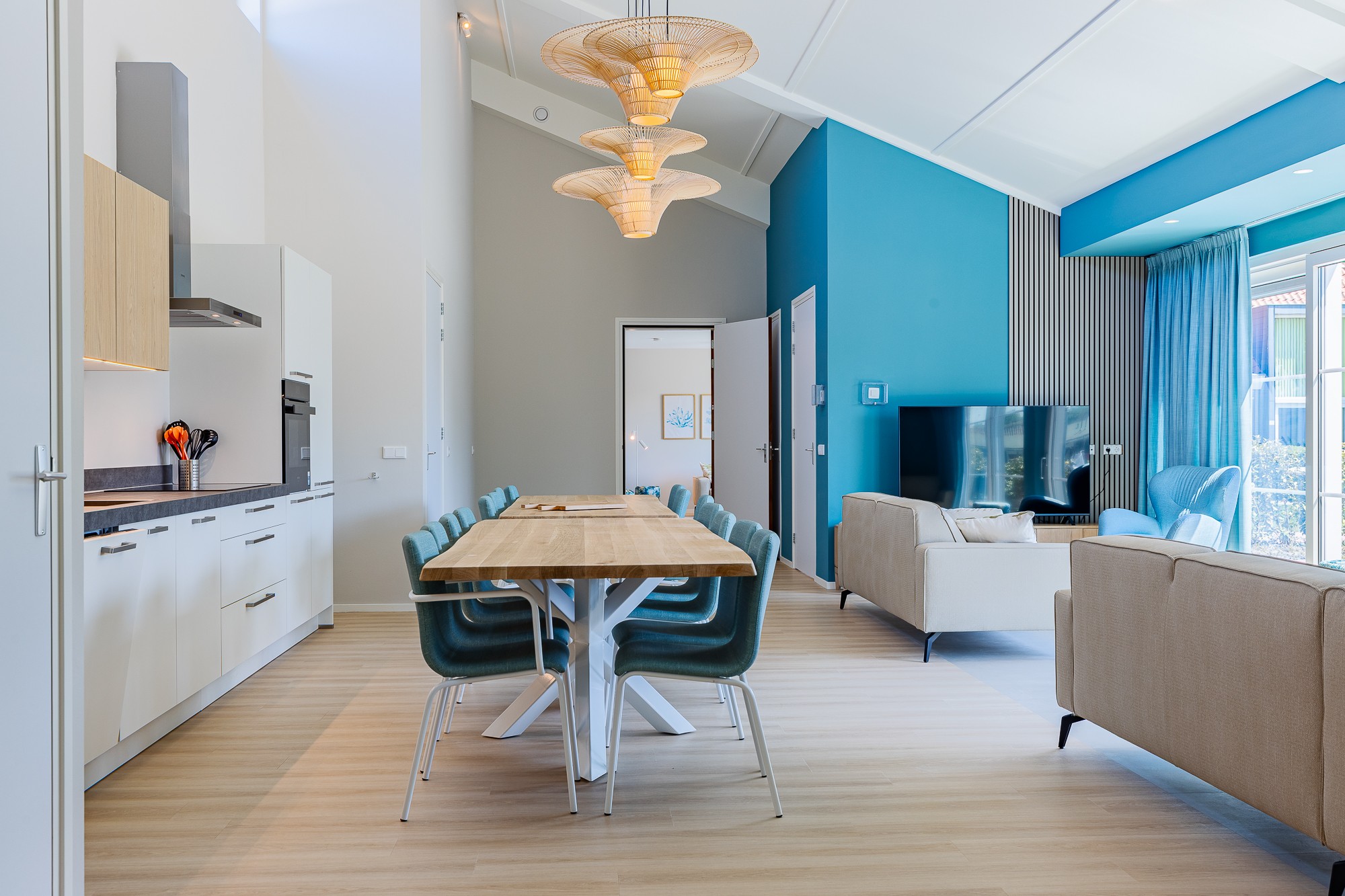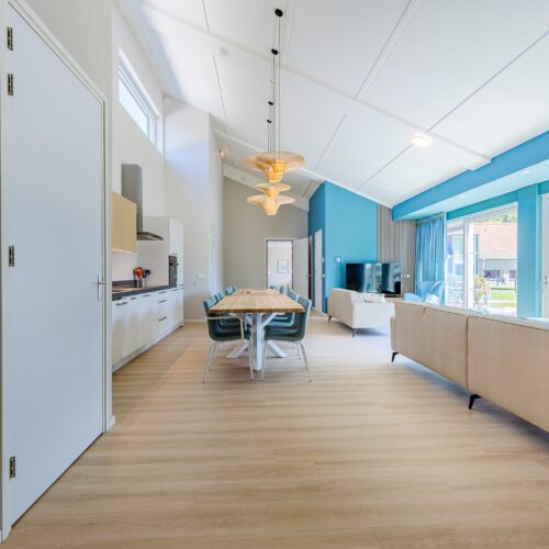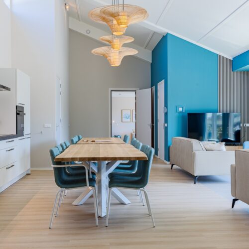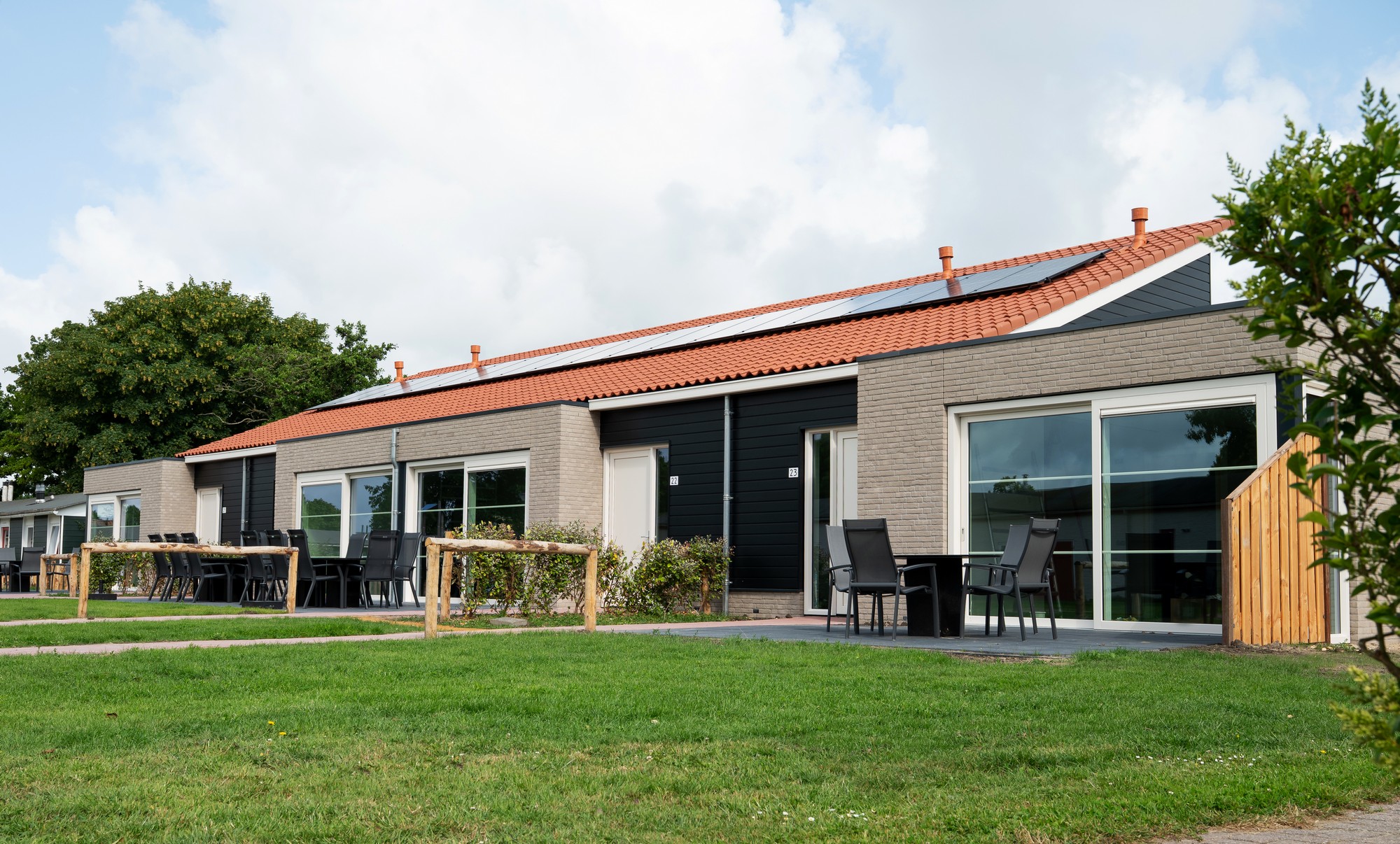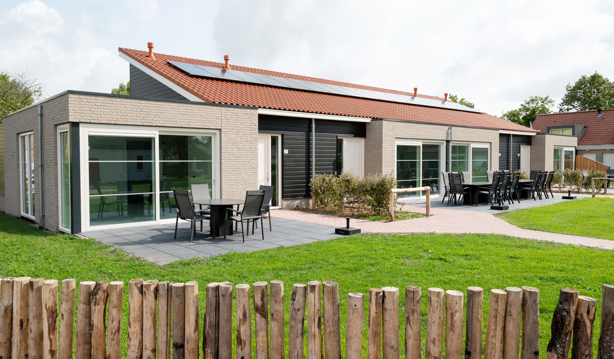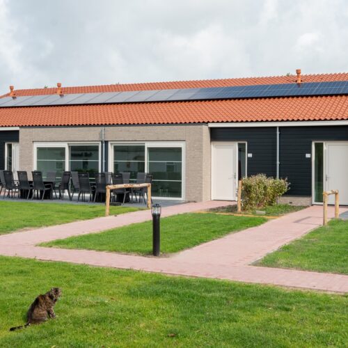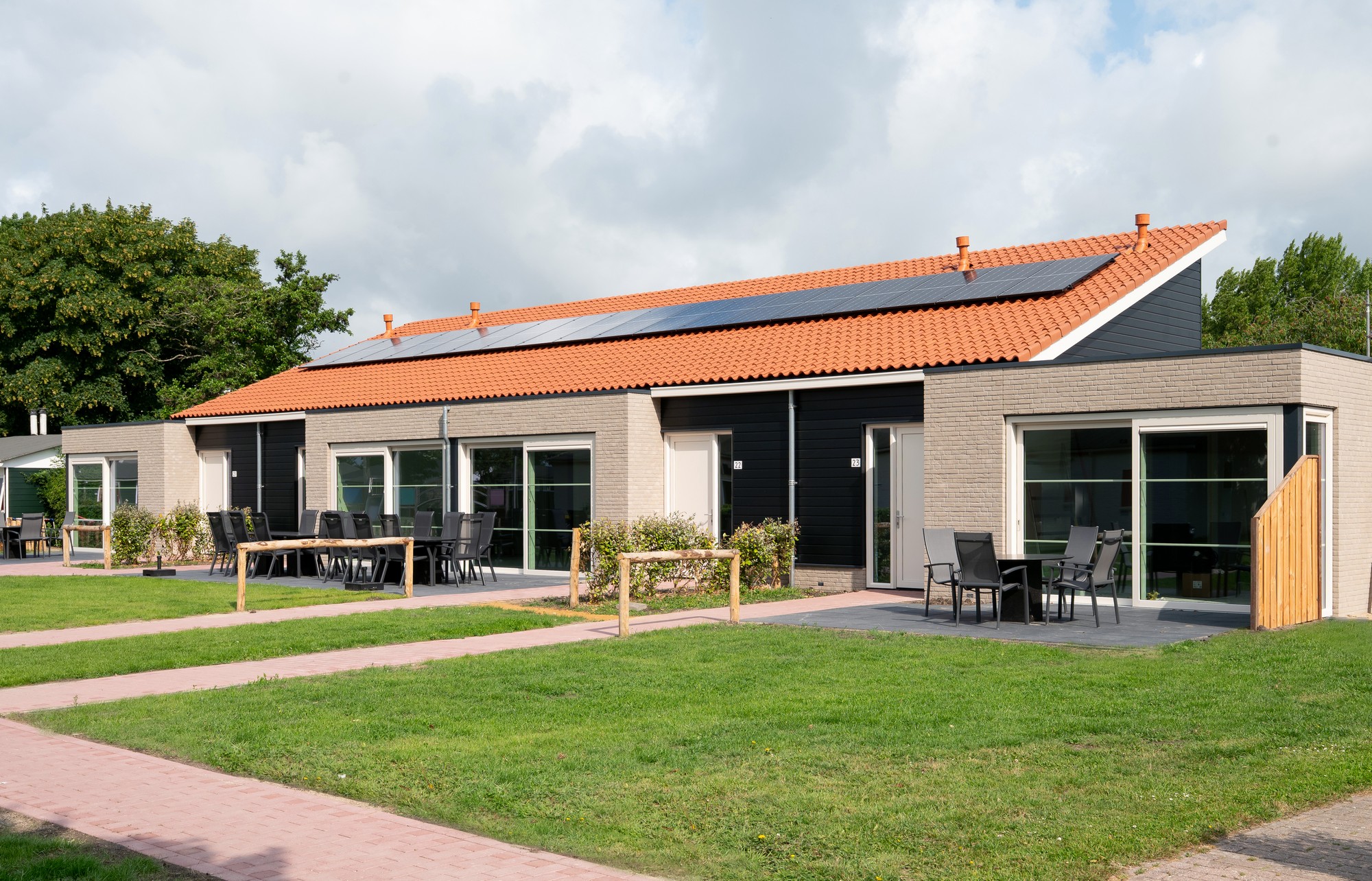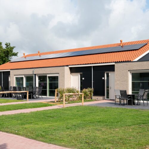 Ook rolstoelgeschikte 16 persoons groepsaccommodatie, modern en sfeervol ingericht. Indeling: 4-8 en 4 persoons bungalows die geschakeld zijn door middel van een tussendeur. Het midden, de 8 persoons bungalow is volledig ingericht voor 16 personen. Wil je je juist even terugtrekken, dan heb je in de 4 persoons bungalows heerlijk privacy. In totaal 8 ruime slaapkamers, allemaal 1 persoons boxspring bedden, 3 keukens, 3 woonkamers, 4 badkamers (waarvan 3 geschikt voor minder valide gasten). Ideaal voor een 3 generatie-groep, teambuilding of bevriende koppels. Bouwjaar 2025. Energielabel A.