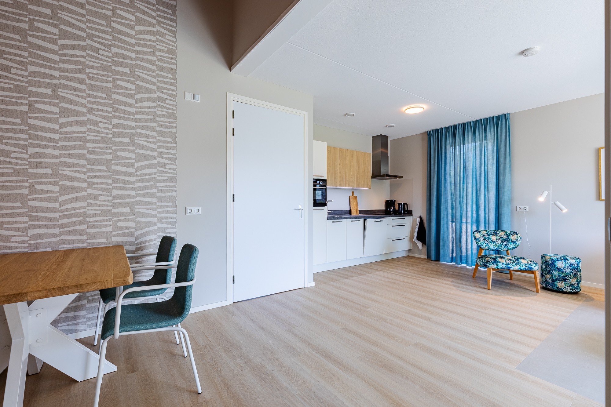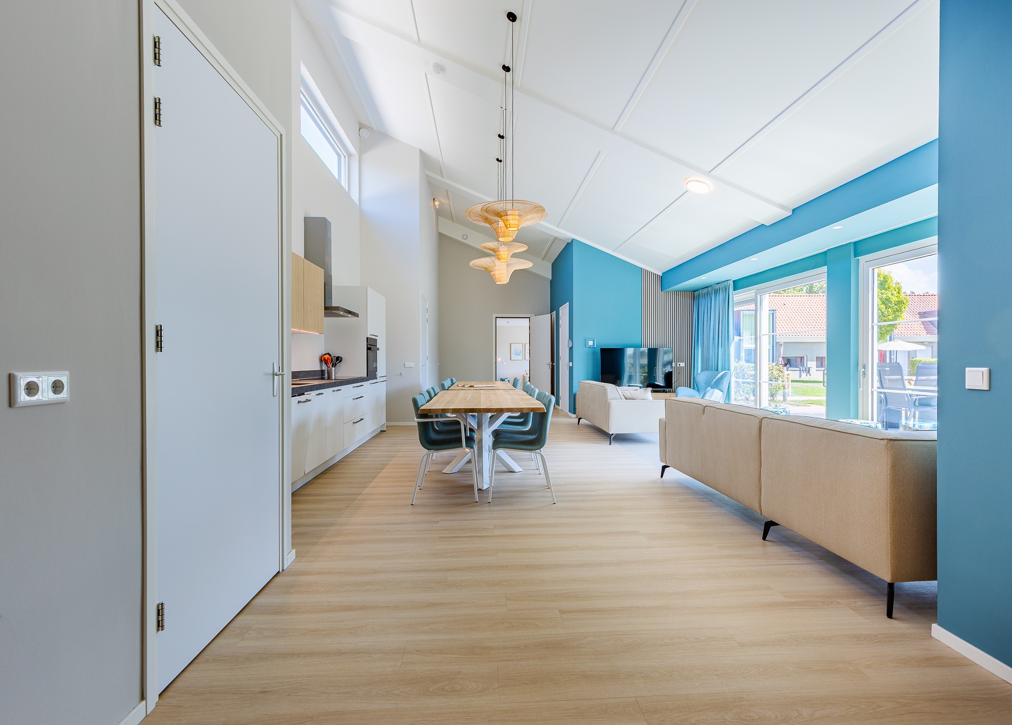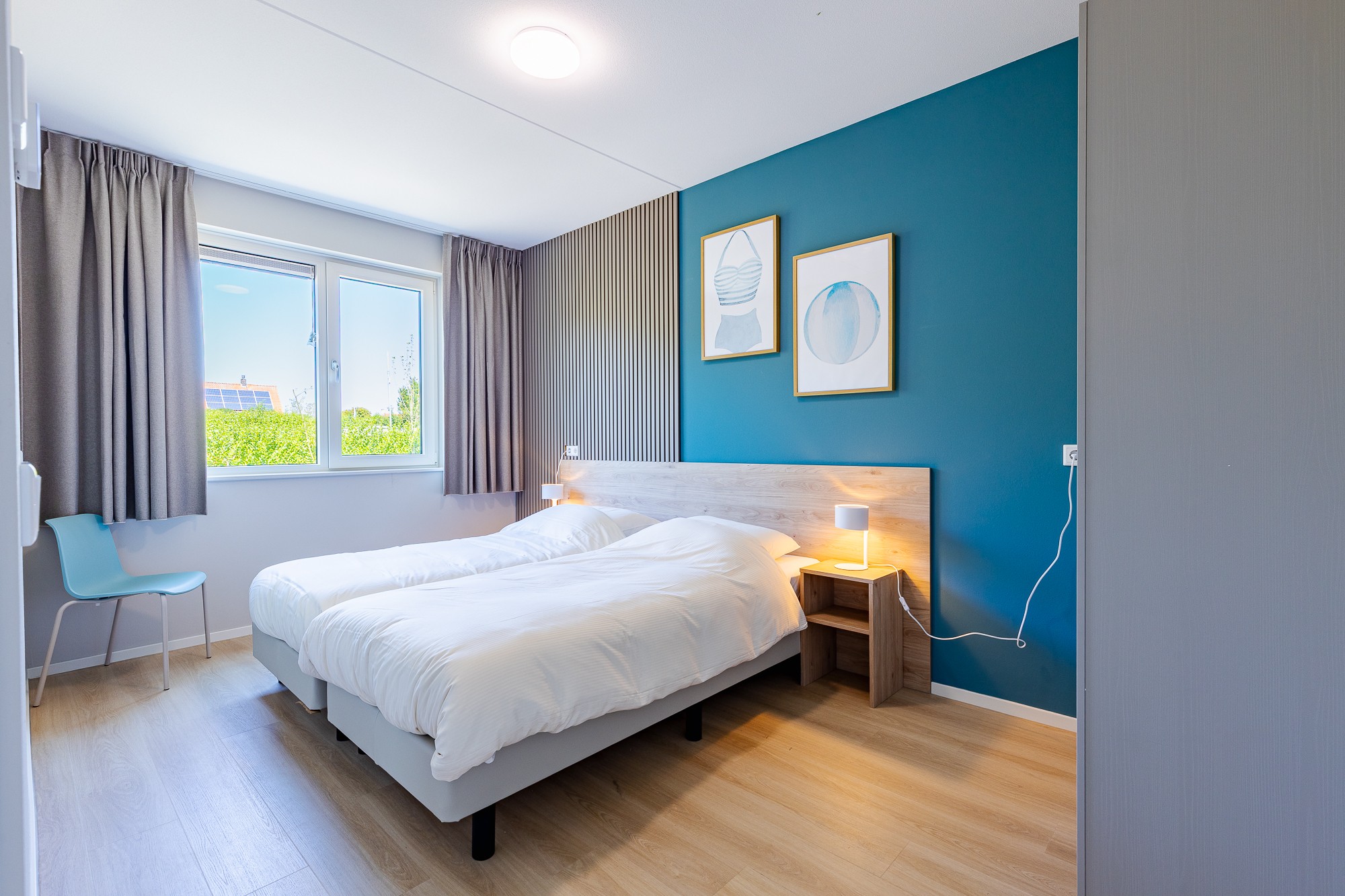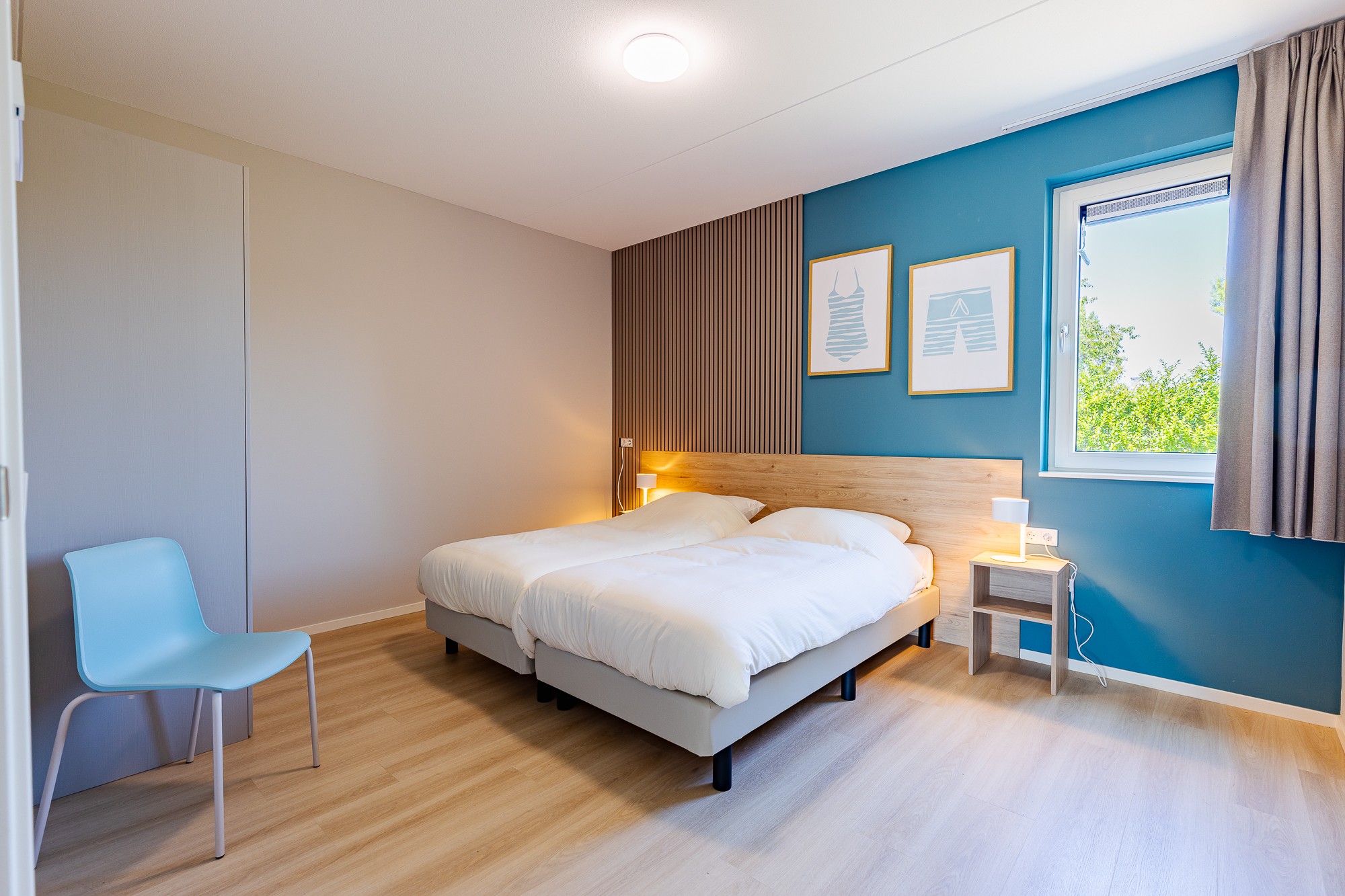 Ook rolstoelgeschikte 16 persoons groepsaccommodatie, modern en sfeervol ingericht. Indeling: 4-8 en 4 persoons bungalows die geschakeld zijn door middel van een tussendeur. Het midden, de 8 persoons bungalow is volledig ingericht voor 16 personen. Wil je je juist even terugtrekken, dan heb je in de 4 persoons bungalows heerlijk privacy. In totaal 8 ruime slaapkamers, allemaal 1 persoons boxspring bedden, 3 keukens, 3 woonkamers, 4 badkamers (waarvan 3 geschikt voor minder valide gasten). Ideaal voor een 3 generatie-groep, teambuilding of bevriende koppels. Bouwjaar 2025. Energielabel A.