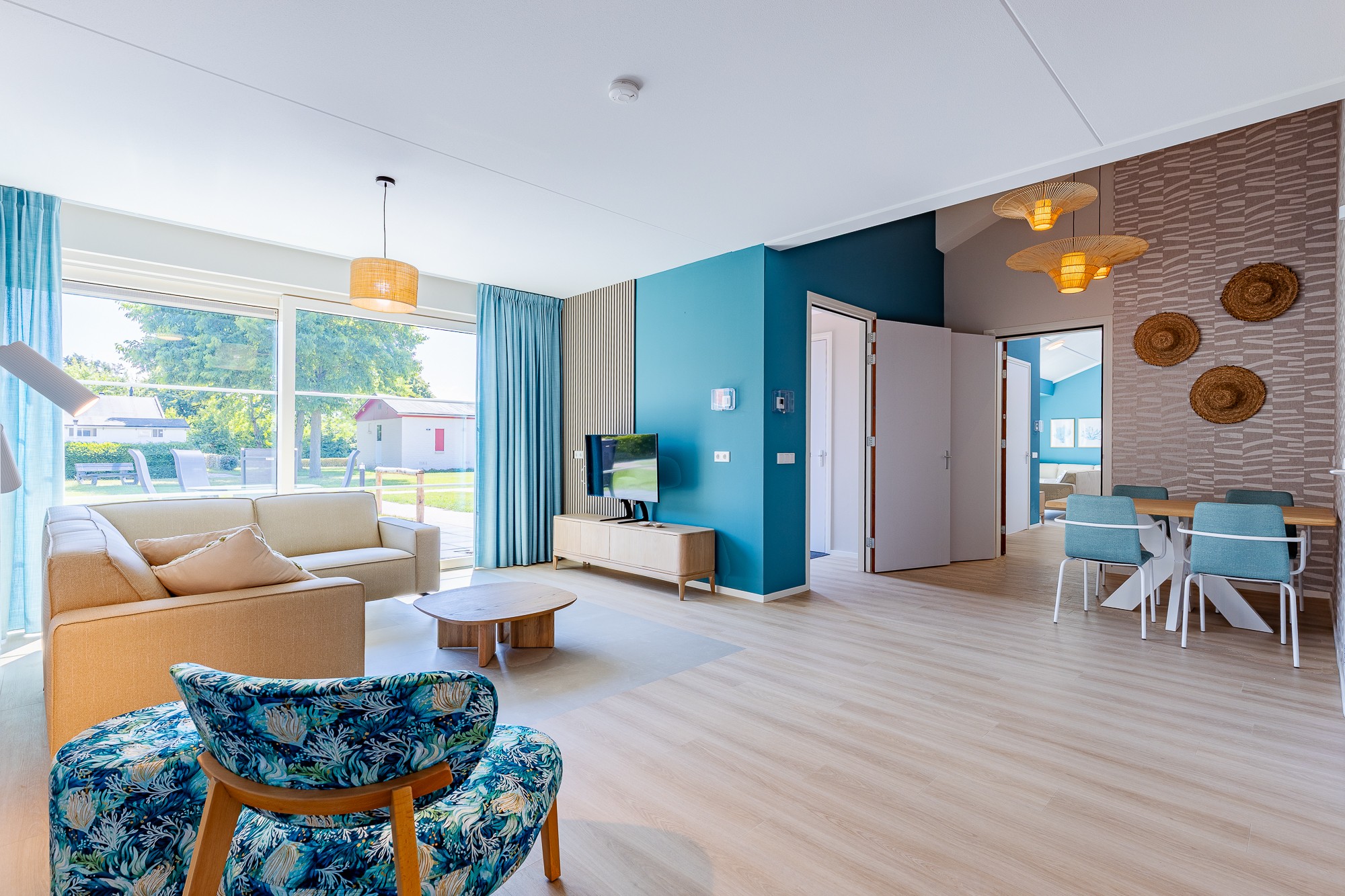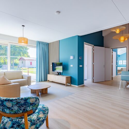 - De bungalows zijn zeer ruim van opzet en gelegen op een ruim opgezet park met vanuit het terras uitzicht op de speeltuin.