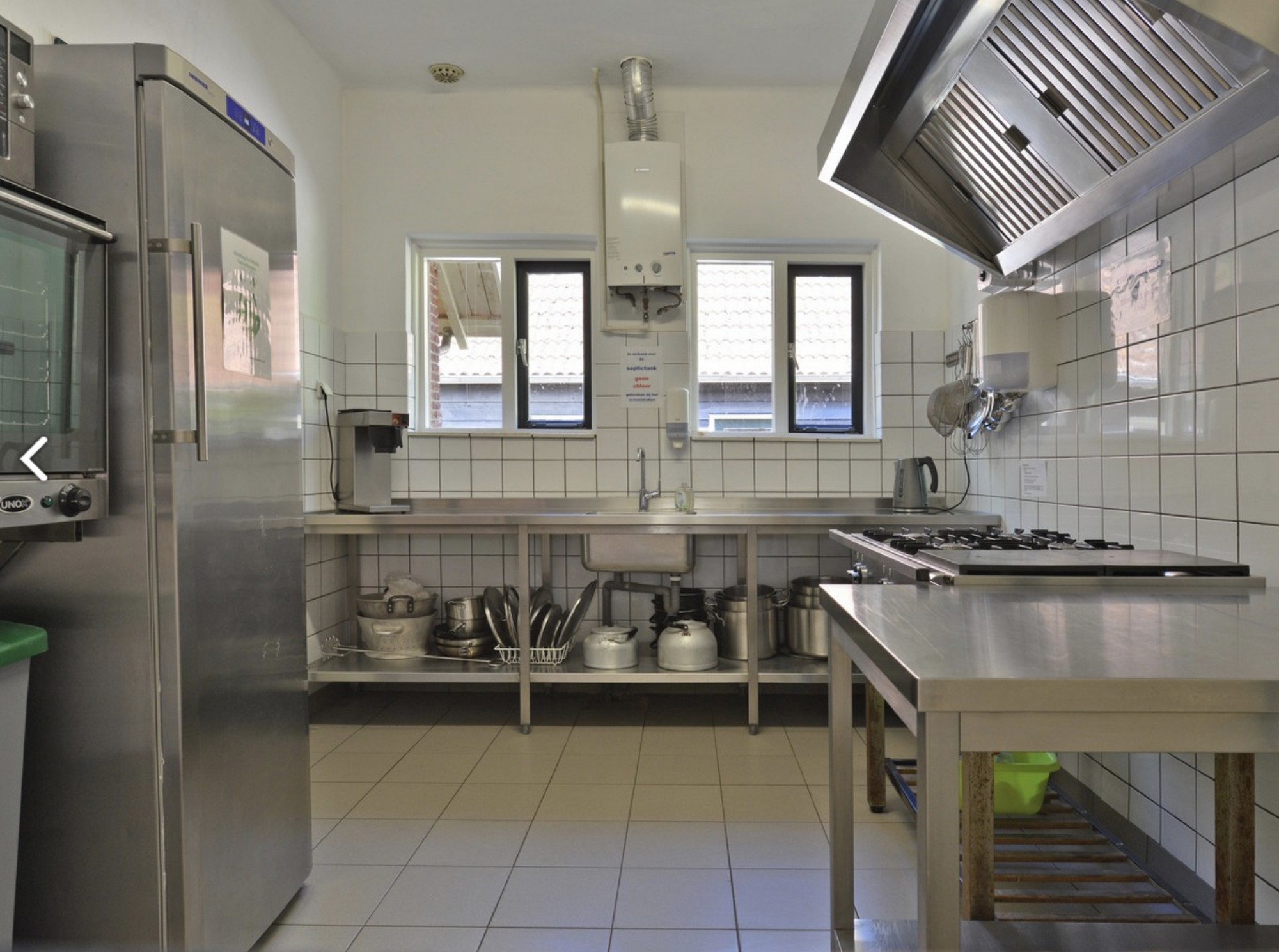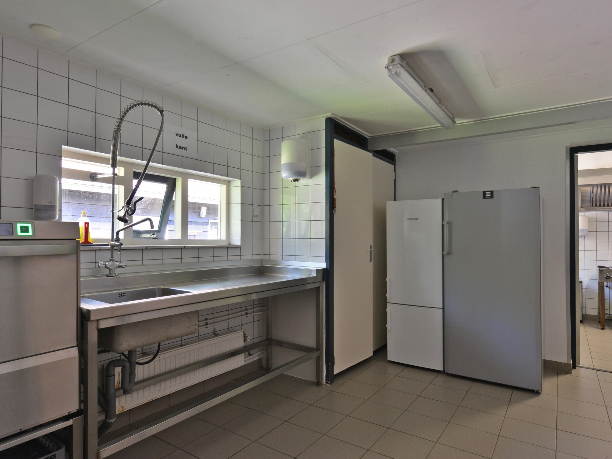- Professionele keuken met vaatwasser en grote koelkast