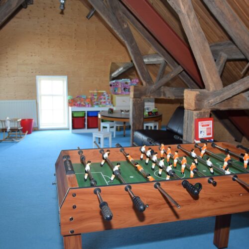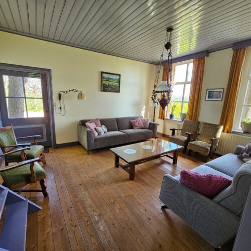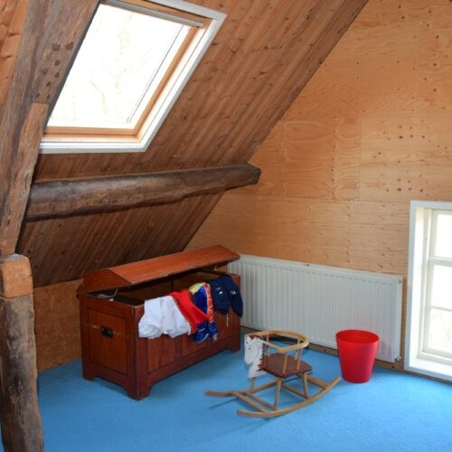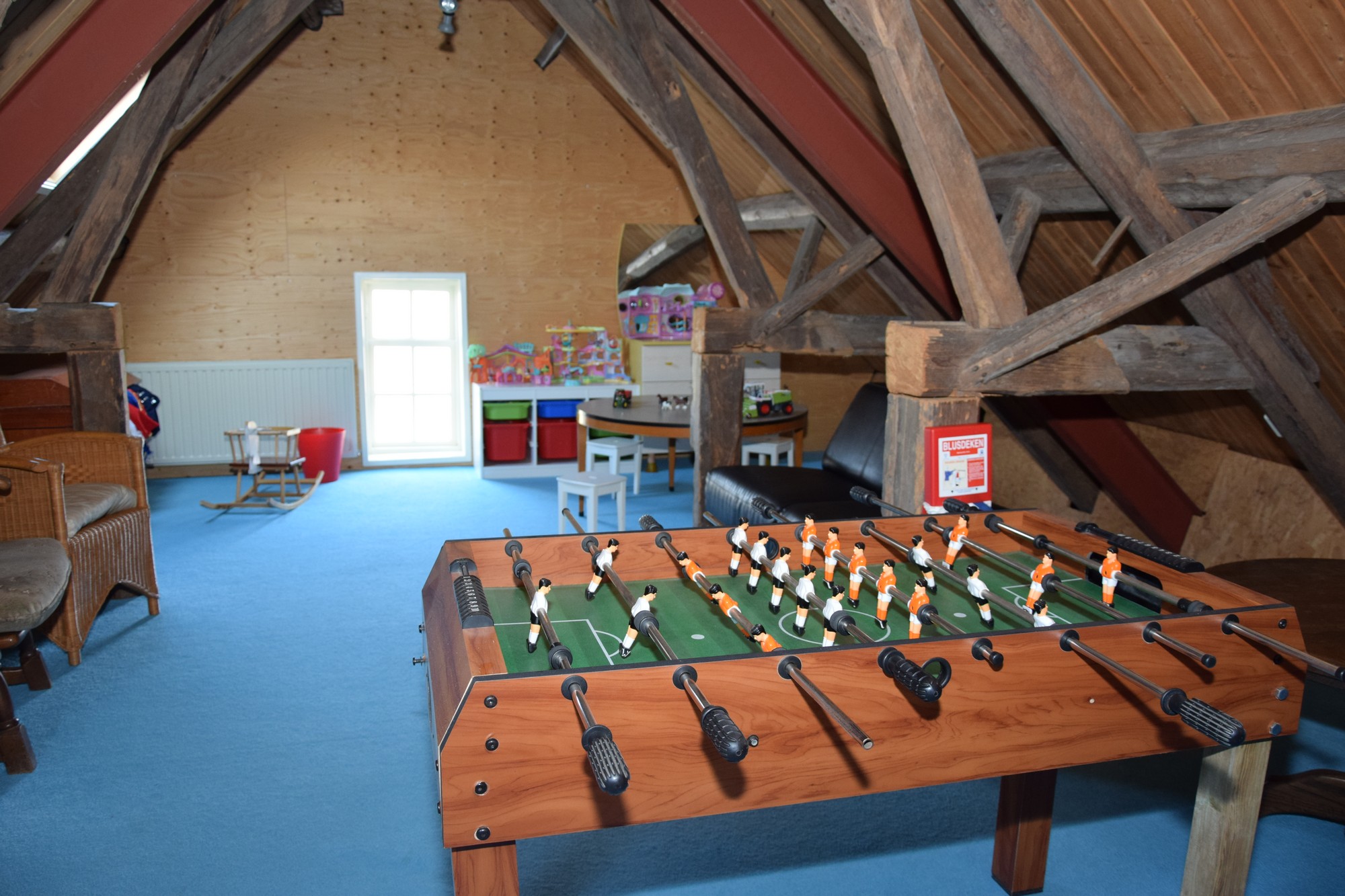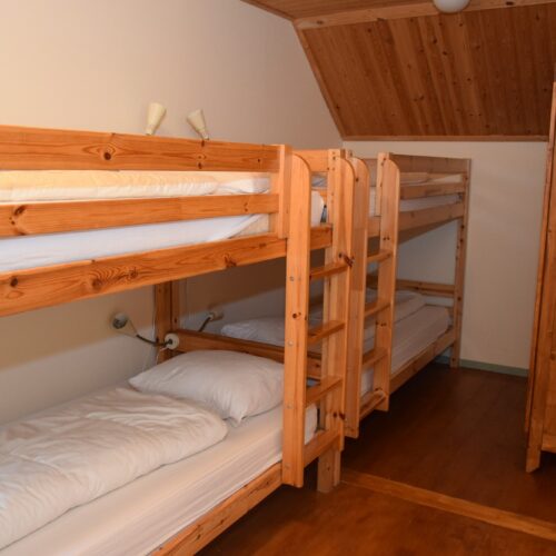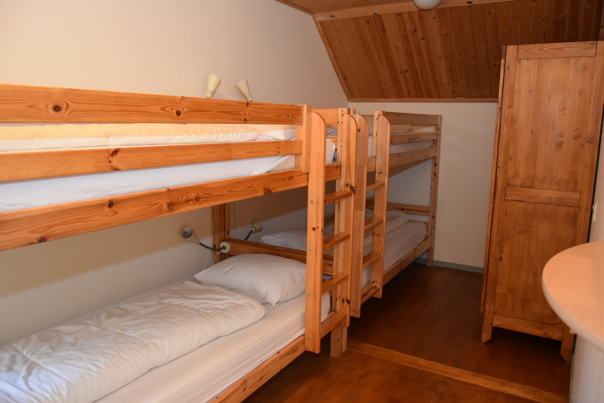 Deze groepsaccommodatie heeft een ruime keuken, eetkamer, zitkamer en 6 slaapkamers waarvan één beneden in de opkamer. De vier slaapkamers boven met allemaal superieure, lange boxspringbedden zijn voorzien van een wastafel. De slaapkamer met twee stapelbedden is zeer geliefd bij kinderen. Voor hen is er een badkamer met dubbele wastafel en een kinderbad op hoogte. Boven zijn er twee doucheruimtes en een aparte wc. Beneden is er een badkamer met douche, wastafel en wc. Op zolder is er een speelzolder waar verschillend speelgoed zoals een voetbaltafel en verkleedkleren aanwezig zijn. De zolder kan afgezet worden met een traphekje zodat ook de allerkleinsten er naar hartenlust kunnen spelen.